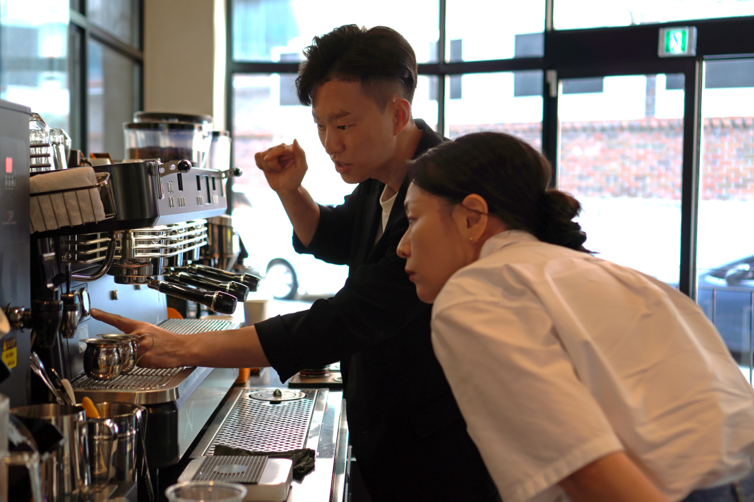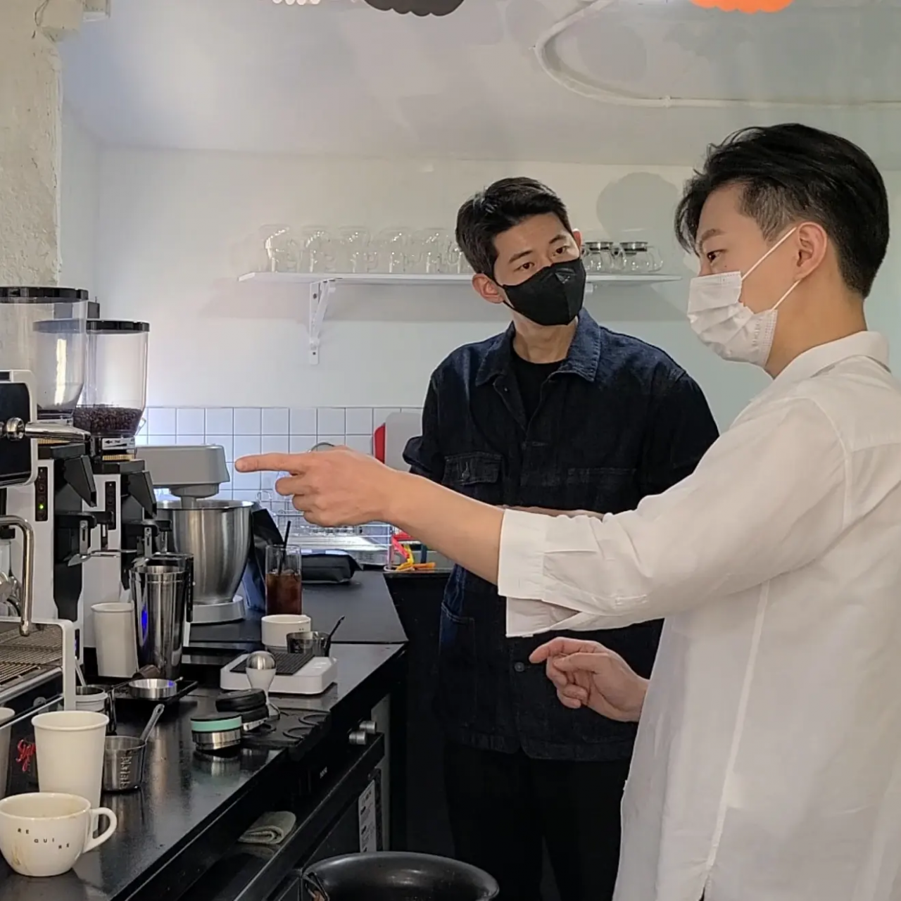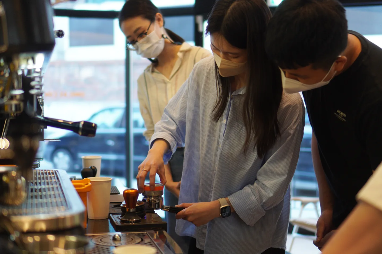 사장과 로스터 두 명이 수강생 한 명에게 커피 지식, 가치관을 수업합니다. 저희 둘이 알고 있는 모든 커피 지식과 경험치를 전달하는 방식입니다. 콩 원두에 대한 기초적인 이해, 추출 자체의 맛 조절, 센서리. 단기간 수강생분이 전반적인 커피 지식틀을 잡도록 합니다.