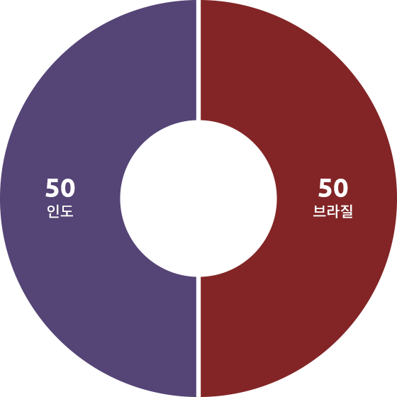 브라질 50% → 볼륨감 있는 단맛, 고소함
