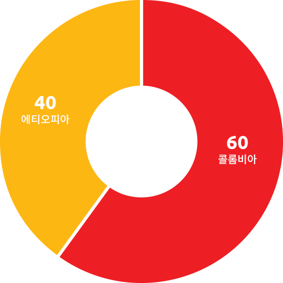 에티오피아(Natural) 40% → 과일의 단맛, 화사한 플레이버