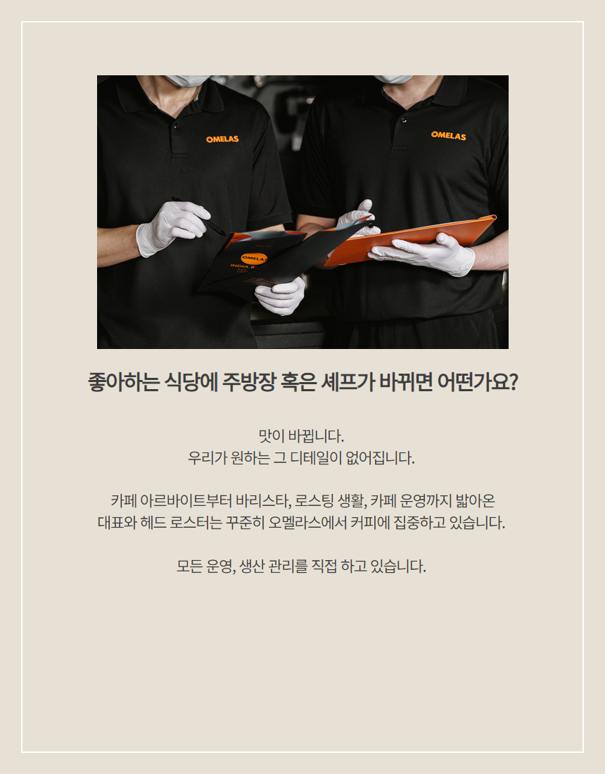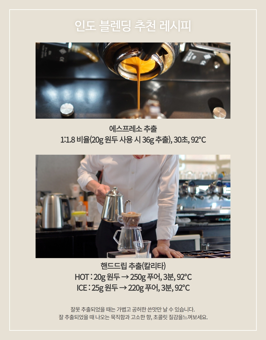 오멜라스의 커피 철학을 담은 기본, 인도 블렌딩입니다.